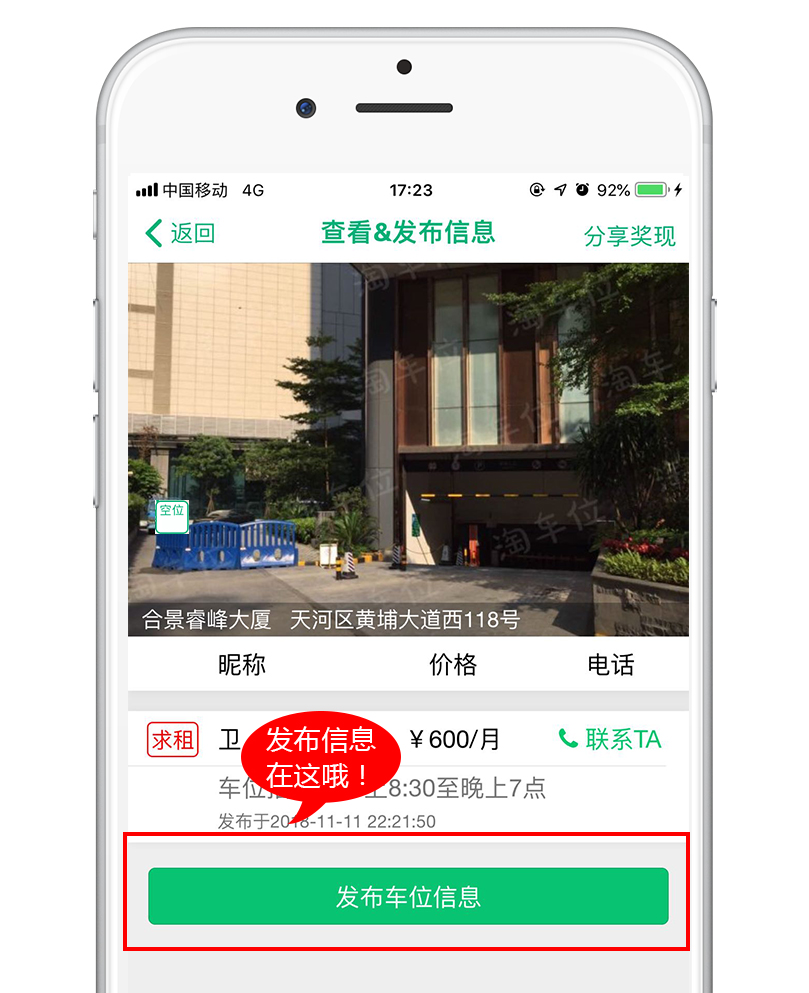 二、了解以下几步,让您在平台上精准发布车位出租求租、拼车位信息,100%免中介费。